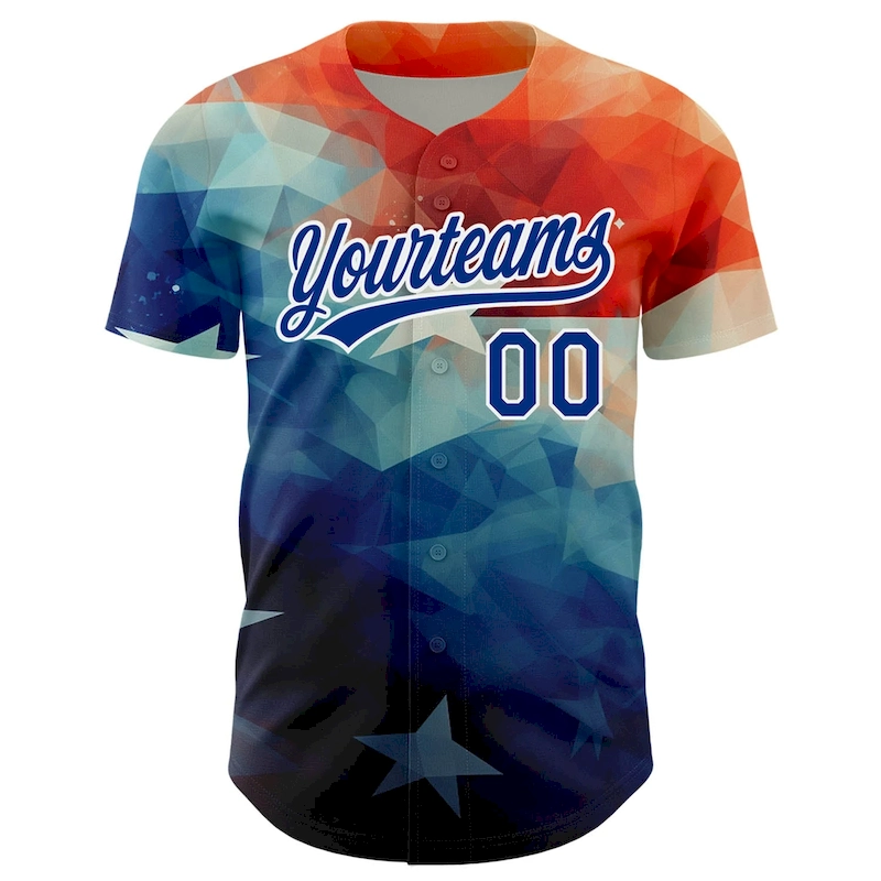 Custom Red Royal-White 3D American Flag Patriotic Authentic Baseball Jersey
