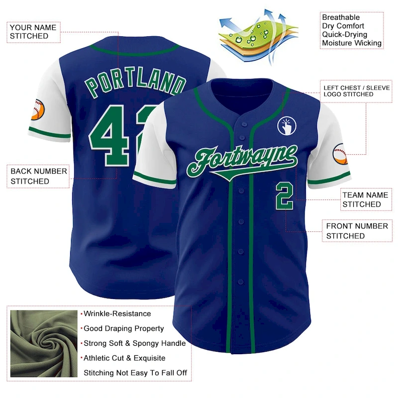 Custom Royal Kelly Green-White Authentic Two Tone Baseball Jersey