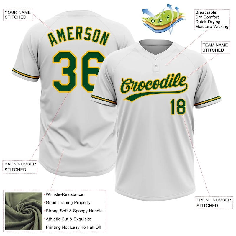 Custom White Green-Gold Two-Button Unisex Softball Jersey